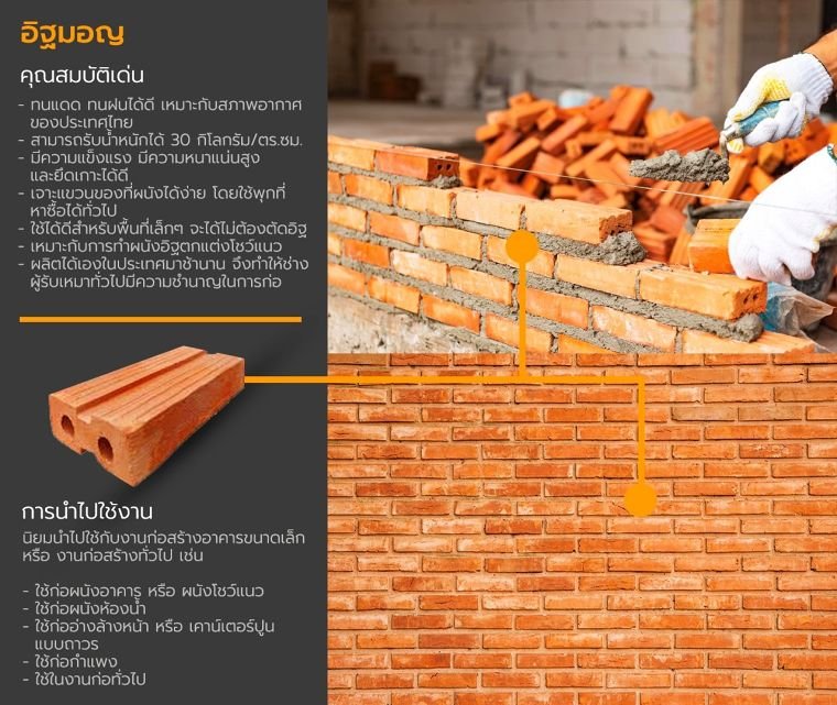 อิฐ (Brick) ถือเป็นหนึ่งในวัสดุก่อสร้างพื้นฐานที่นิยมใช้งานแพร่หลายมาตั้งแต่อดีตจนถึงปัจจุบัน โดยมีความสำคัญต่ออุตสาหกรรม Building Material & Construction เป็นอย่างมาก โดยเฉพาะการช่วยเพิ่มความแข็งแรงให้กับผนังอาคารในรูปแบบต่างๆ อีกทั้งยังทำหน้าที่ปกป้องอาคารจากสภาวะแวดล้อมภายนอก นอกจากนี้ยังใช้ก่อผนังภายในอาคารเพื่อแบ่งสัดส่วนพื้นที่การใช้งาน (Function) ภายในอาคารอีกด้วย