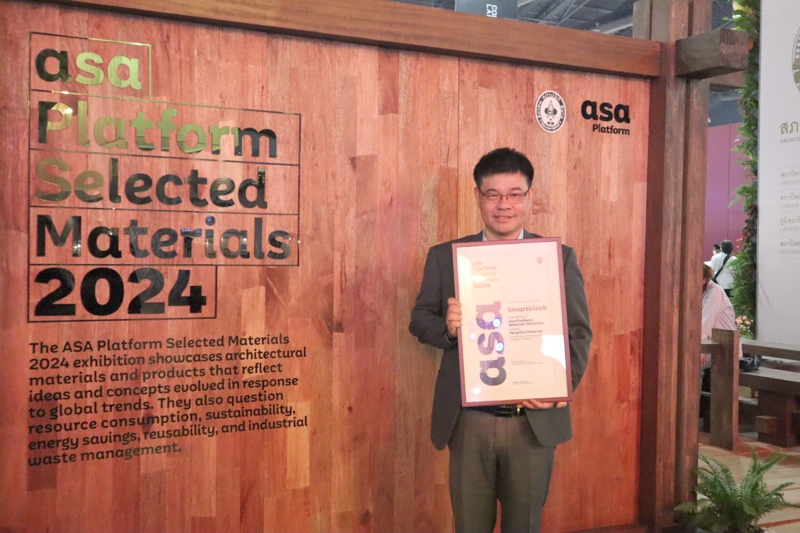 บริษัท สมาร์ทคอนกรีต จำกัด (มหาชน) ขึ้นรับมอบรางวัล asa Platform Selected Materials 2024 ในหัวข้อ Recycled Materials ซึ่งบล็อคผนังตกแต่ง สมาร์ทบล็อค เป็น 1 ใน10 แบรนด์ผู้ผลิตชั้นนำที่ผ่านการคัดเลือกและได้รับรางวัลในปีนี้ โดยได้รับเกียรติจากคุณชุตยาเวศ สินธุพันธุ์ ประธานจัดงานสถาปนิก’67 เป็นผู้มอบรางวัล โดยมีคุณรังสี ทีปกรสุุขเกษม กรรมการผู้จัดการ บริษัท สมาร์ทคอนกรีต จำกัด (มหาชน) ขึ้นรับมอบรางวัล ในวันศุกร์ที่ 13 พฤษภาคม 2567 ในงานสถาปนิก’67 ซึ่งจัดขึ้นระหว่างวันที่ 30 เมษายน - 5 พฤษภาคม 2567 ณ อิมแพ็ค เมืองทองธานี